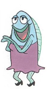 Она — светло-голубая рыба со светло-бирюзовыми губами и светло-зелёным спинным плавником и ногами. На ней фиолетовое платье и чёрные туфли. В более старых образах ее глаза были ближе, у нее не было обуви и не было деталей рук.