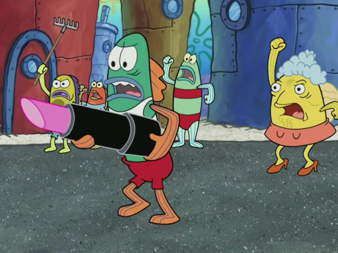 Он возглавляет разъярённую толпу, которая гонится за гигантским Сквидвардом. Он сначала говорит, что забыл мячи для огромных мерзких гигантов, а затем он красит губы Сквидварда помадой, когда того схватили.