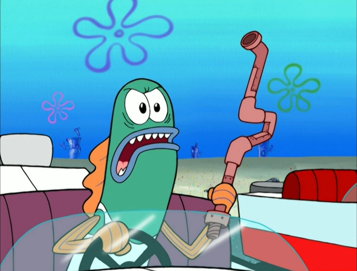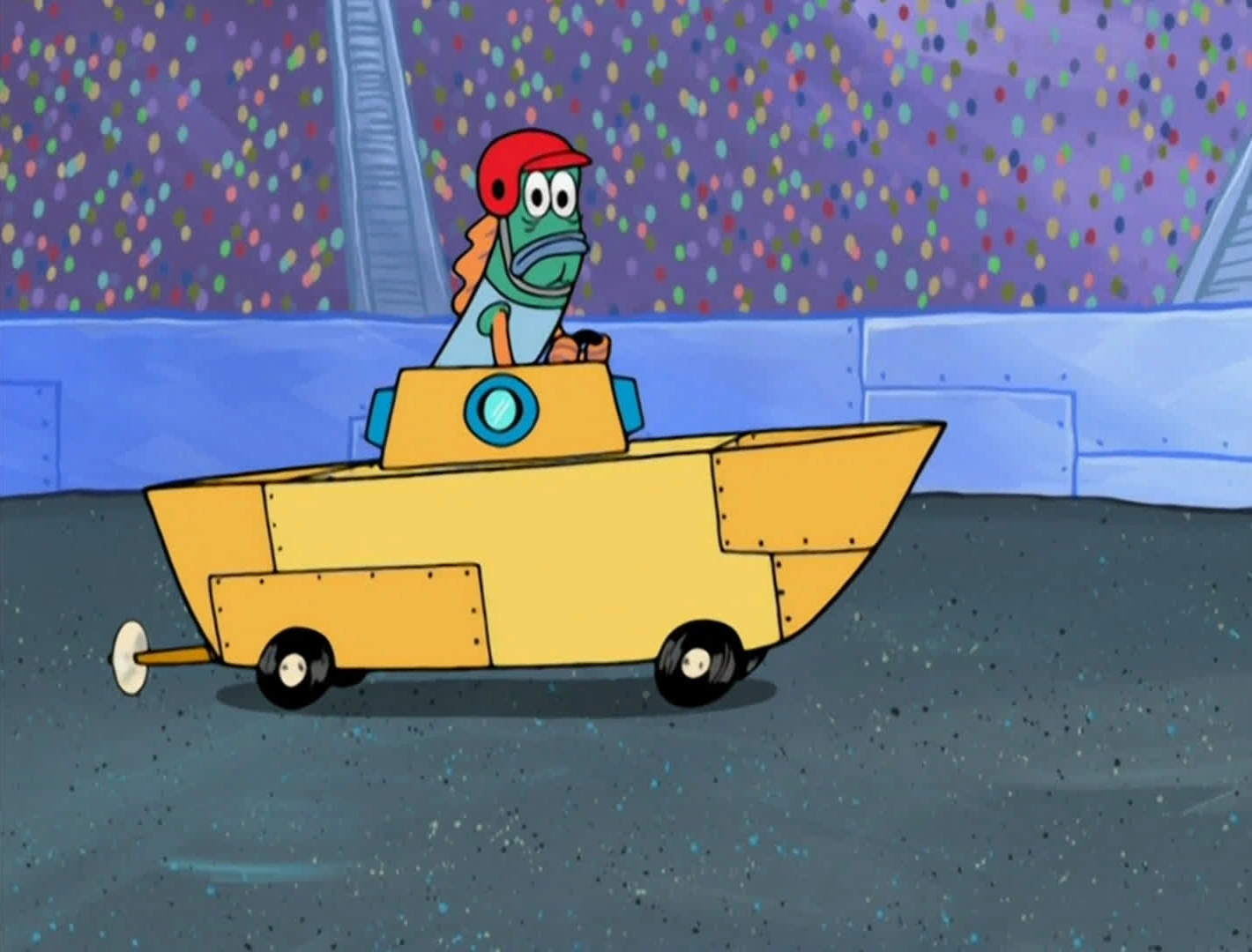 Он появляется как водитель в гонках на разрушение, где трое других водителей-разрушителей врезаются в него вместо Губки Боба.