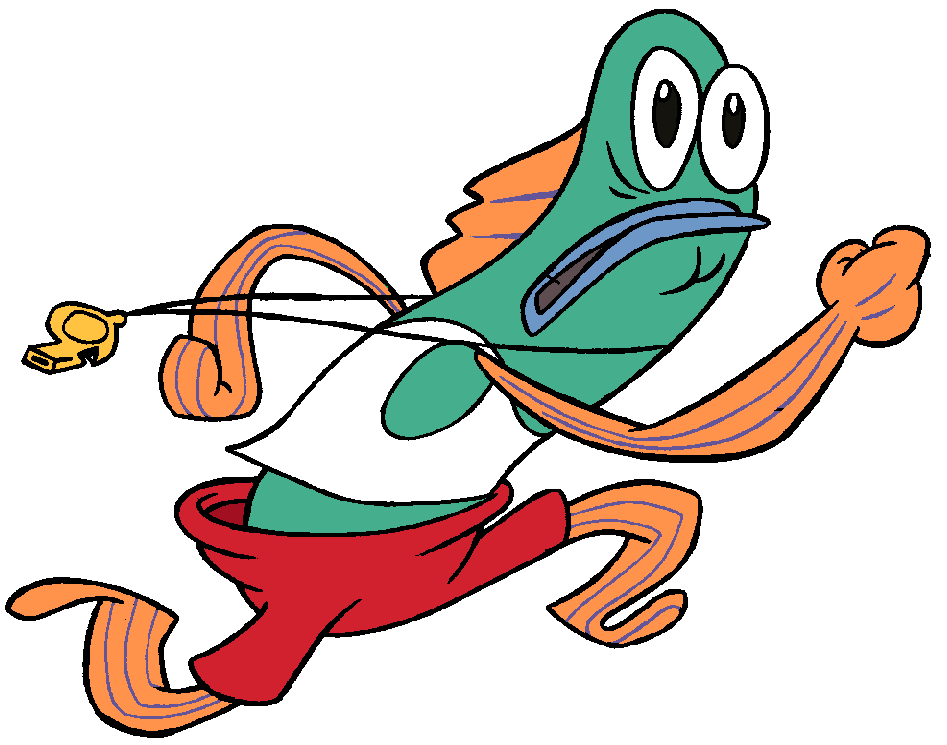 Он — рыба тёмно-бирюзового цвета с оранжевыми руками и ногами и выцветшими синими губами. Он одет в белую майку и красные шорты. У него также виднеется подбородок, а на шее у него серебряный свисток спасателя. В его старых появлениях свисток был золотистого цвета. Во многих его появлениях было показано, что у него нет свистка на шее из-за того, что последующих его появлениях он стал обычным жителем Бикини Боттом, а не спасателем.