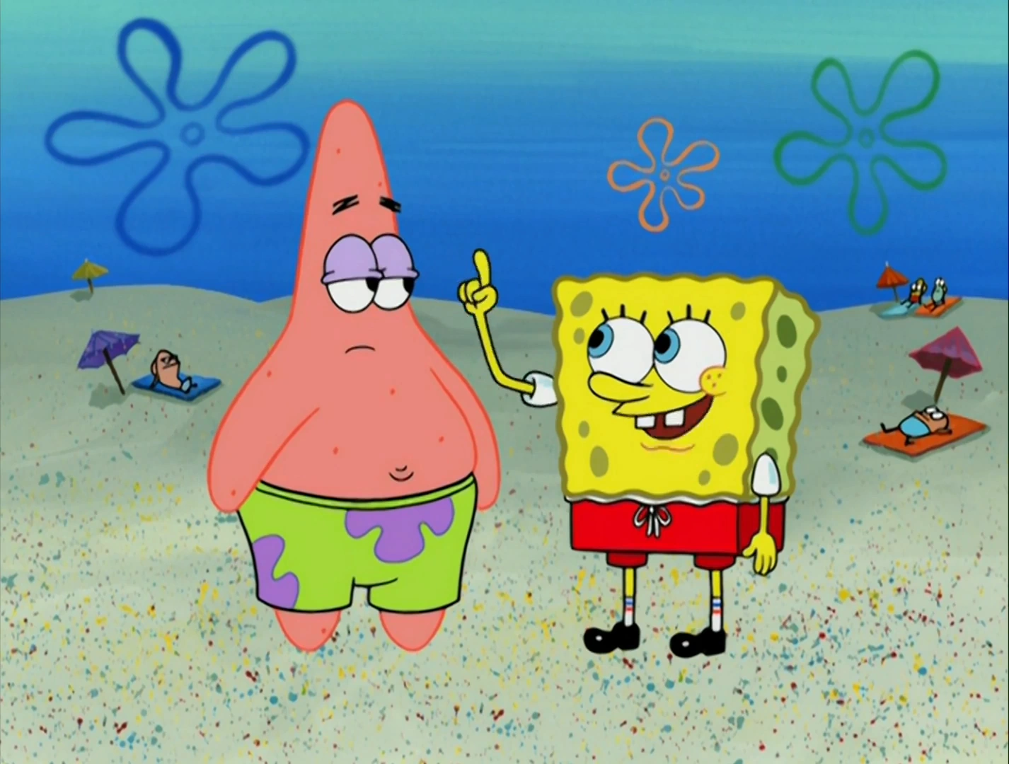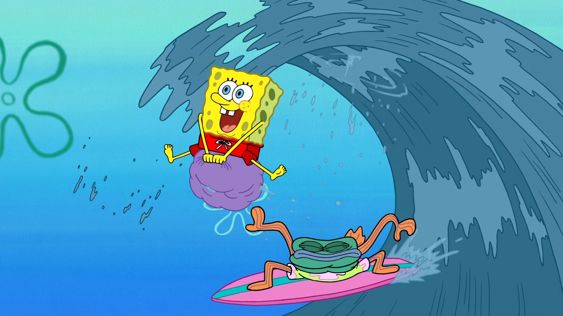 Показано, что он занимается серфингом, пока Патрик не подпрыгивает на нем с липким пузырем.