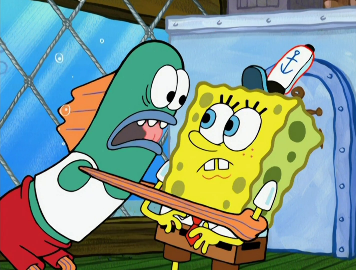 Фоновый 155 недоволен шуткой Губки Боба про порванные штаны.