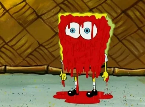 Губка Боб, облитый кетчупом.