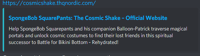 THQ Nordic created a Flash-animated trailer on June 5, 2019, the same day that the game was officially announced. In it, SpongeBob wears his helmet from the original Battle for Bikini Bottom and even does the original pose from the box art.[32][33] The trailer was released alongside a piece of concept artwork, showing shaded artwork of the playable characters: SpongeBob on top of a defeated robot, Patrick eating a throw fruit, and Sandy swinging on her lasso.