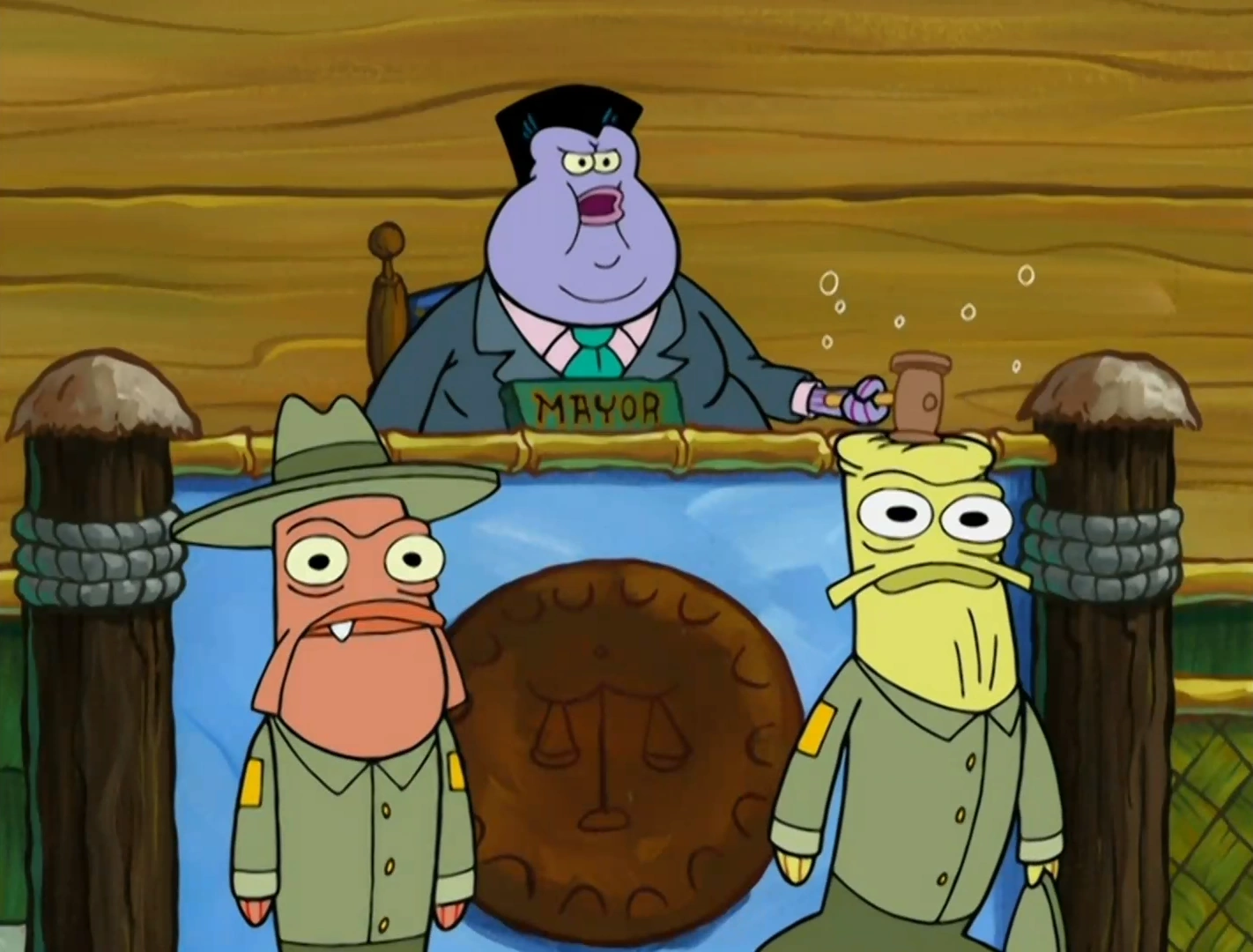 His head got pounded from Mr. Mayor's gavel while he and Barney are seen standing next to each other in court.