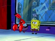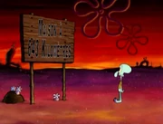 - In "Restraining SpongeBob", when Squidward is removing SpongeBob's name to write Patrick's name in the restraining order paper, a piece of the paper is seen in his head.
