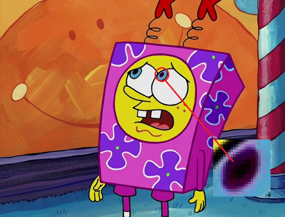 When SpongeBob tries to fire Pearl, his left pupil's outline becomes purple for a split second.