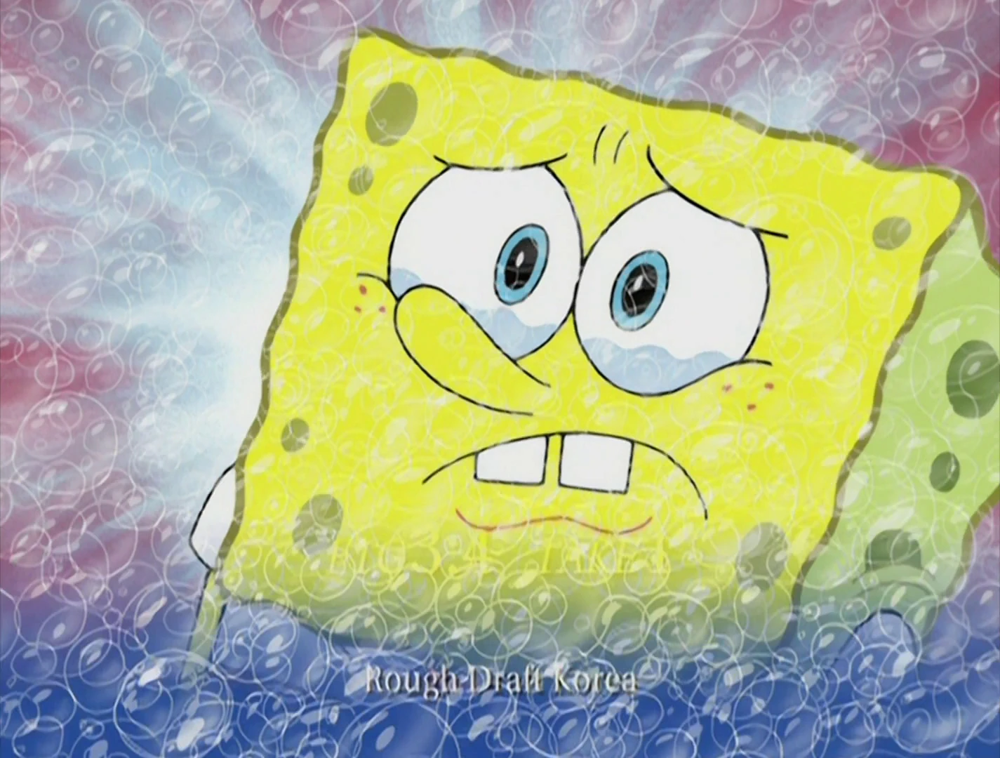 - In "SpongeBob Meets the Strangler," for a brief second, a bubble transition was shown with Rough Draft Korea and a date of Friday, May 17, 2002 at the bottom of the screen.