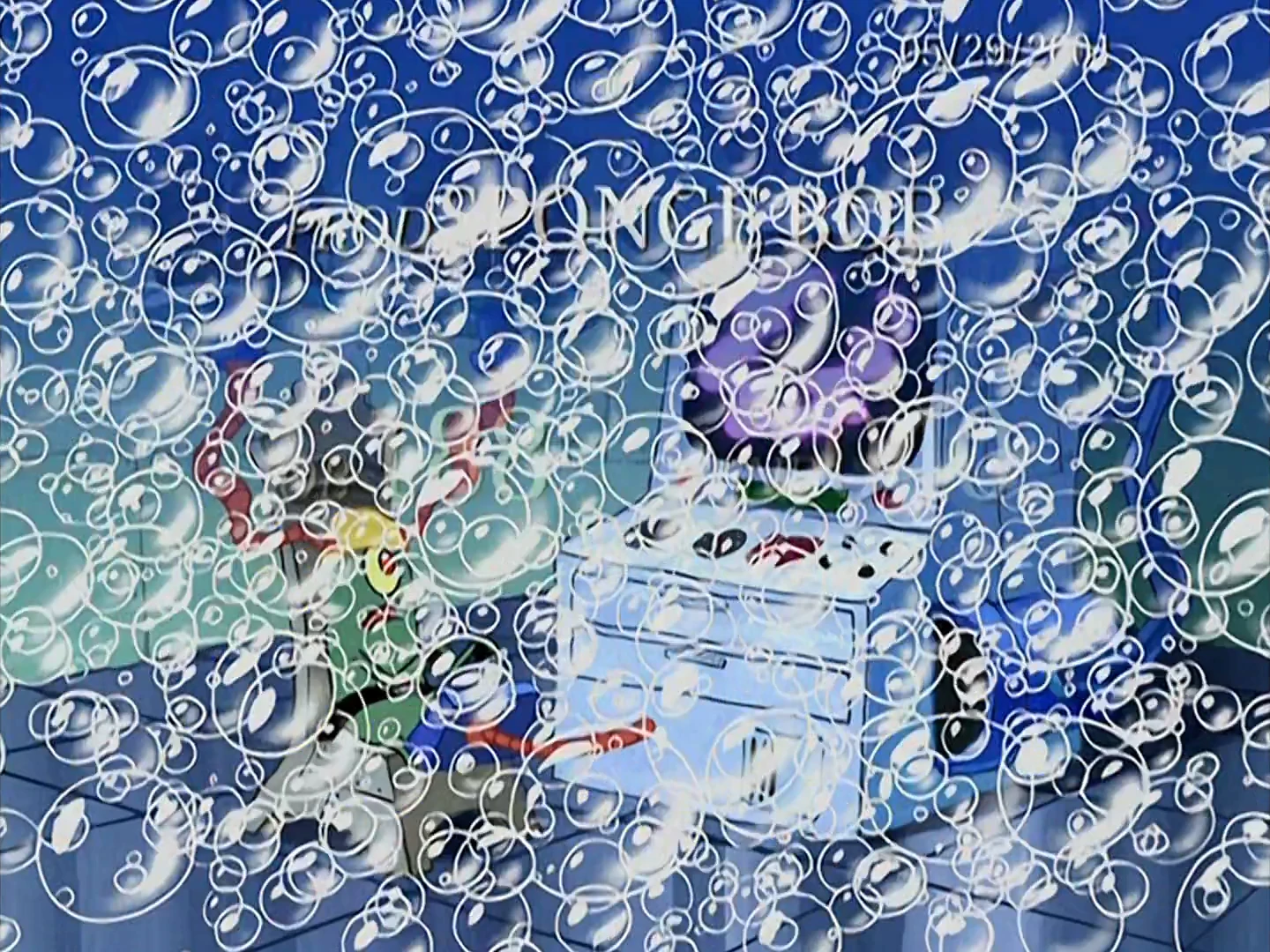 - In "The Algae's Always Greener," for a brief second, a blue screen with a date of May 29, 2001 by Rough Draft Korea can be seen during a bubble transition.