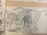 John Trabbic posted two early versions of Fred Osmond's doodles that would take form as SpongeBob's wild "teeth" take on Tumblr on November 22, 2016, alongside other rough board artist doodles. One of them was in black-and-white,[3] the other was in color.[4]