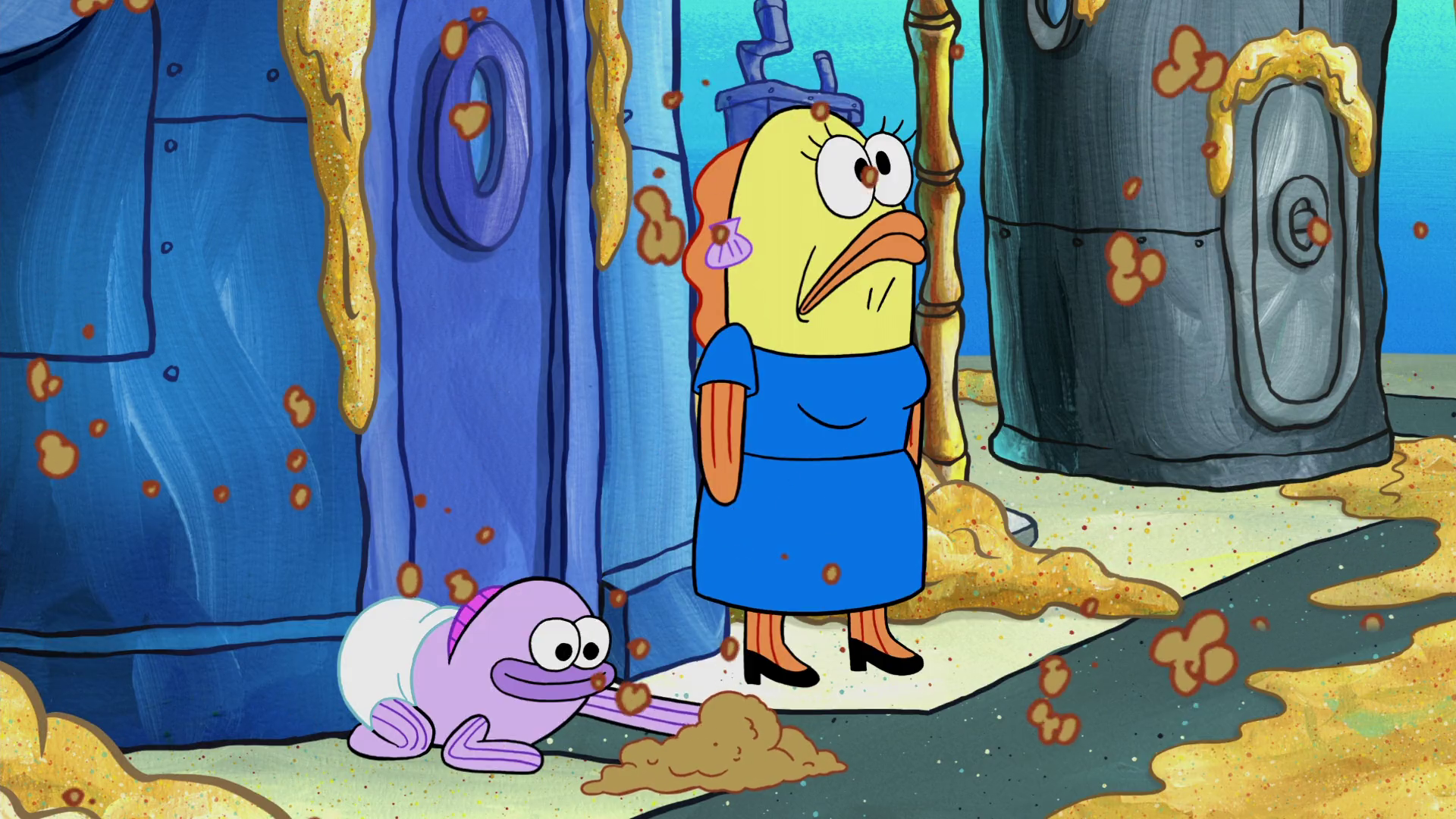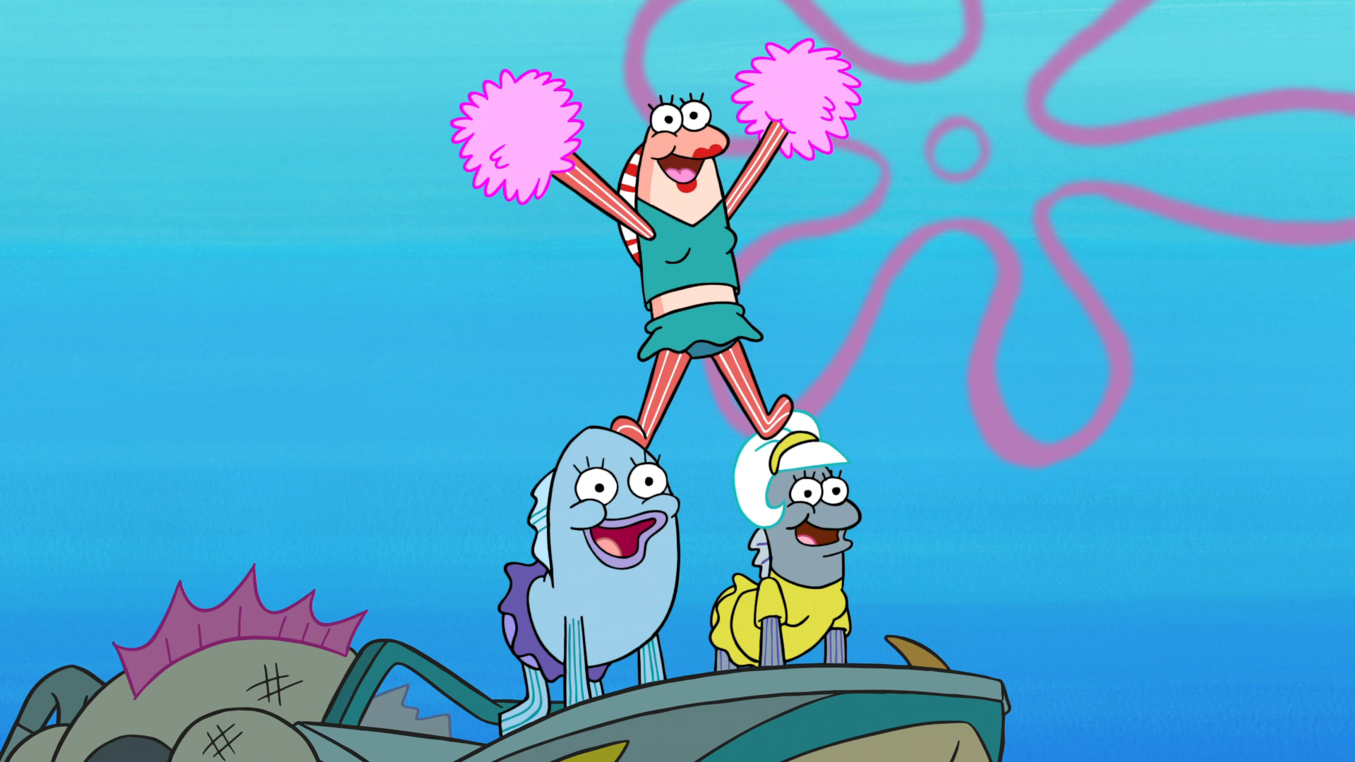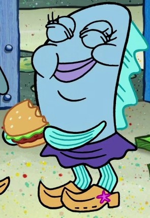 She appears at Pearl's birthday party alongside three other friends. Like the others, she wears flipper slippers, which makes Pearl wish for some too. She and the others laugh at Pearl when Mr. Krabs gives her cheap, black rubber boots instead.