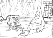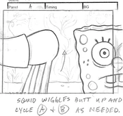 A painting of disheveled Squidward, as seen in the production art gallery, was initially going to be in the episode, but ultimately went unused.