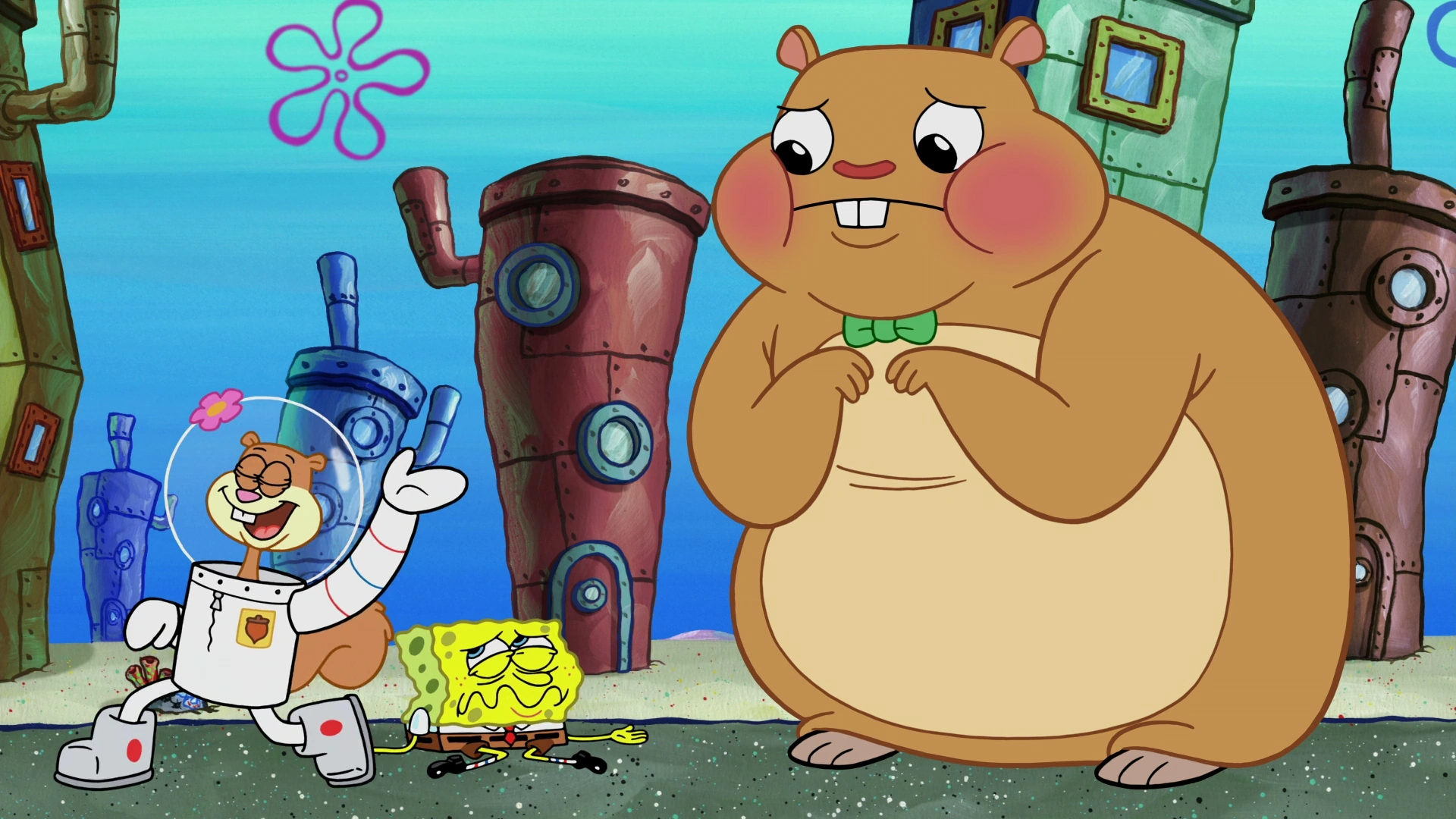 "Cuddle E. Hugs" is a SpongeBob SquarePants episode from season 11. In this episode, SpongeBob's new friend is a giant, fluffy hamster, but no one else is able to see him.