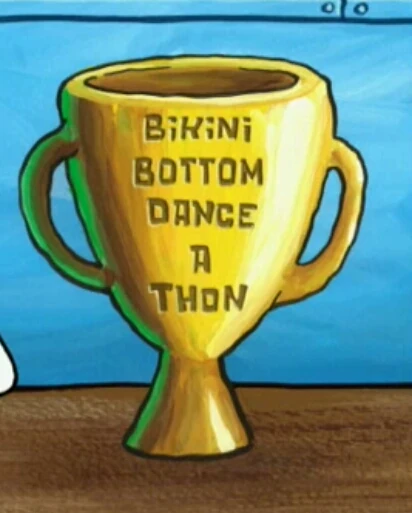 The Dance a Thon Trophy (alternatively spelled Dance-a-Thon Trophy) is a trophy that Squidward, SpongeBob, and Patrick want to win in the episode "Slimy Dancing."