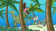 The dinosaur is an animal who appears in the episode "Squidiot Box."