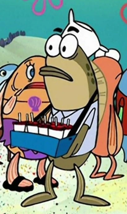 He is seen selling popcorn and peanuts at the Krusty Krab Stadium. When nobody is buying, he offers snorkels.