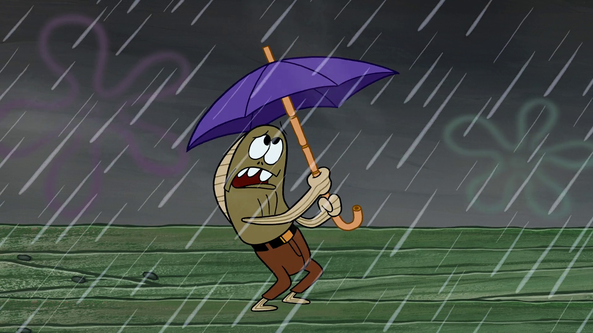 He can be heard yelling "My leg" while Mrs. Puff looks at the destruction of Bikini Bottom from her window.