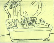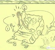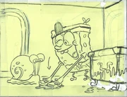 When SpongeBob loses his grip of Gary on the ceiling, the bottoms of his shoes are briefly transparent.