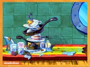 In the French dub, SpongeBob calls a Chinese restaurant.[8]