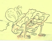 When SpongeBob throws Gary off of his back, one of the frames has the outline around SpongeBob's eye incomplete.