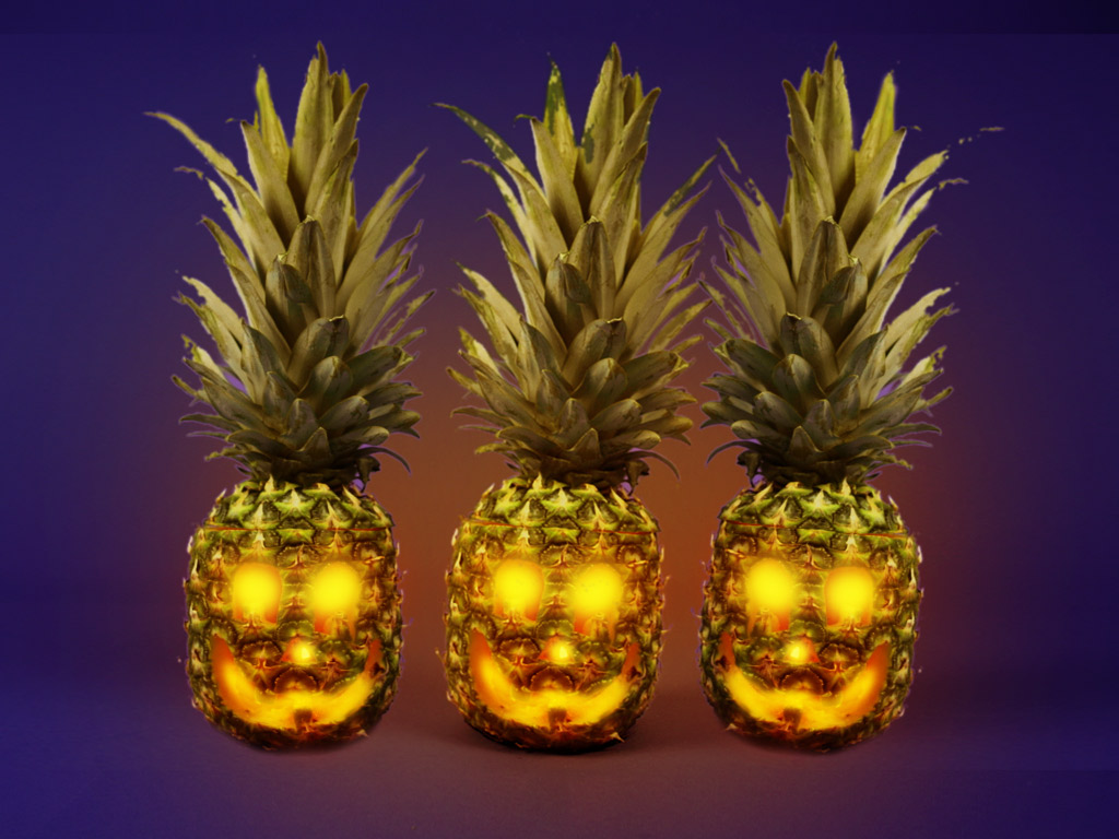 The short demonstrates how to carve a pineapple into a jack-o'-lantern.