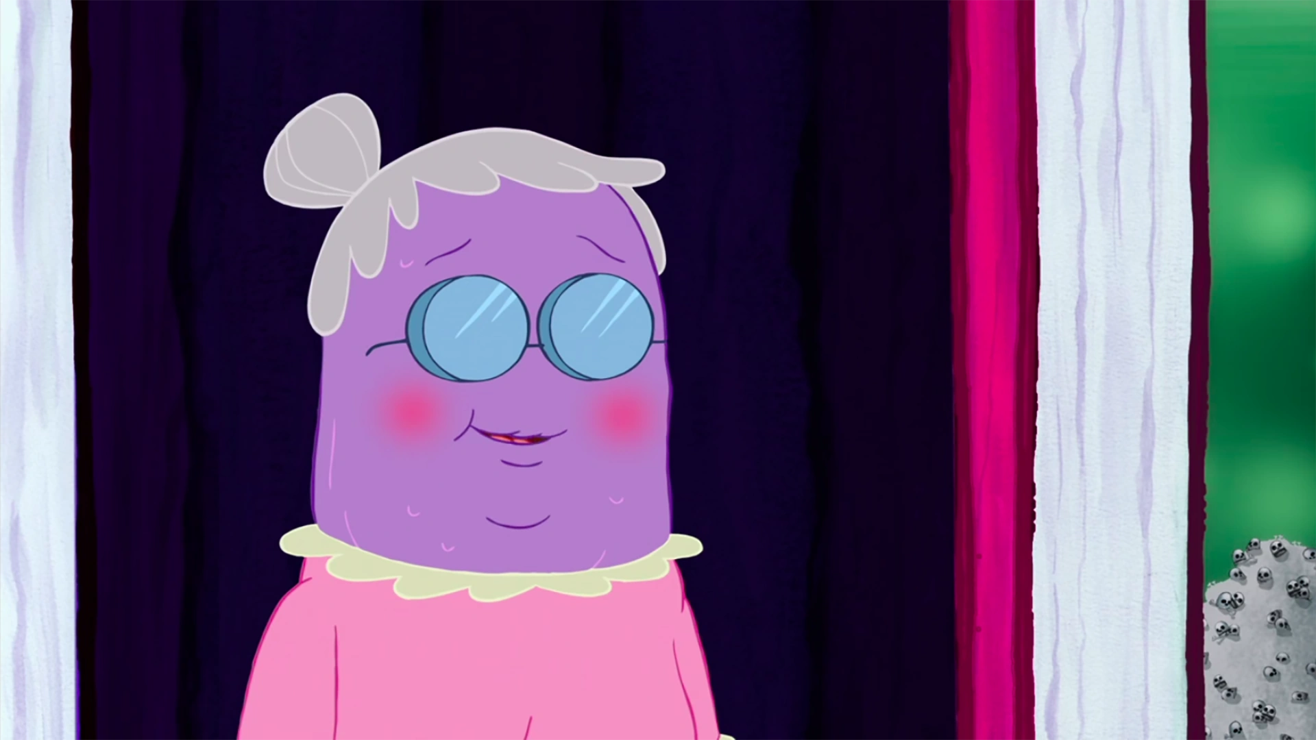 The ice cream lady is the frog fish monster's sentient, anthropomorphic tongue. When she is first seen, she appears to be an elderly, lavender-colored woman with light gray hair in a updo bun and rosy red cheeks. She wears light blue eyeglasses and a short-sleeve pink dress with a white lace collar. It is later revealed that she has no eyes and is connected to the frog fish monster's mouth.