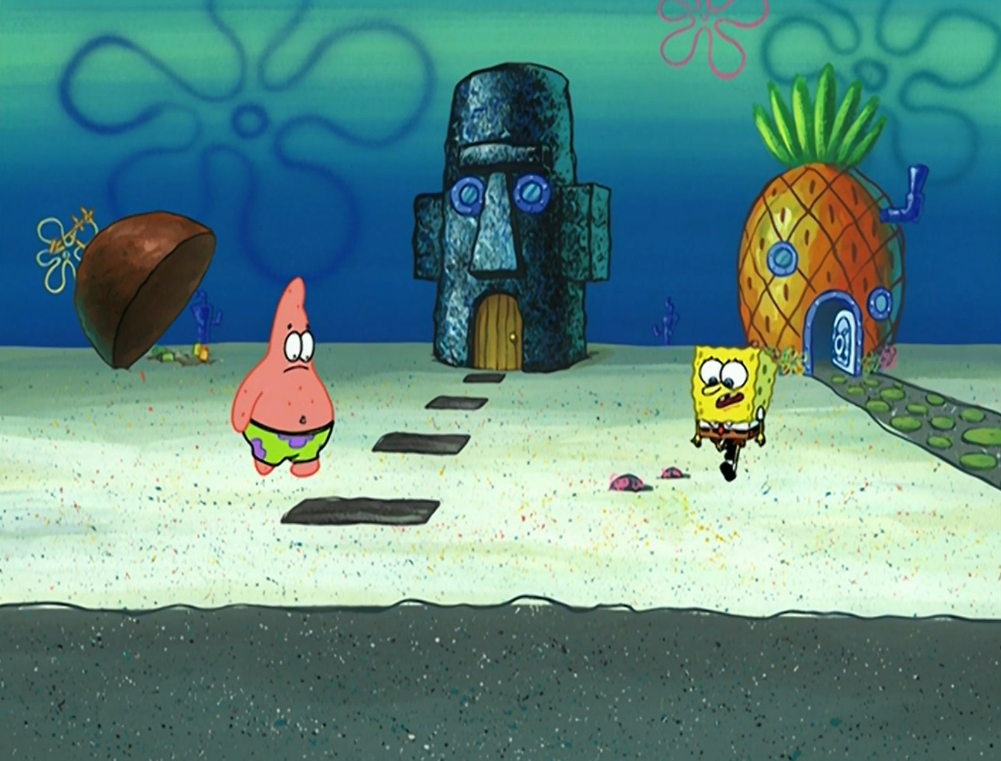 - At the end of the episode, the path to Patrick's house is missing.