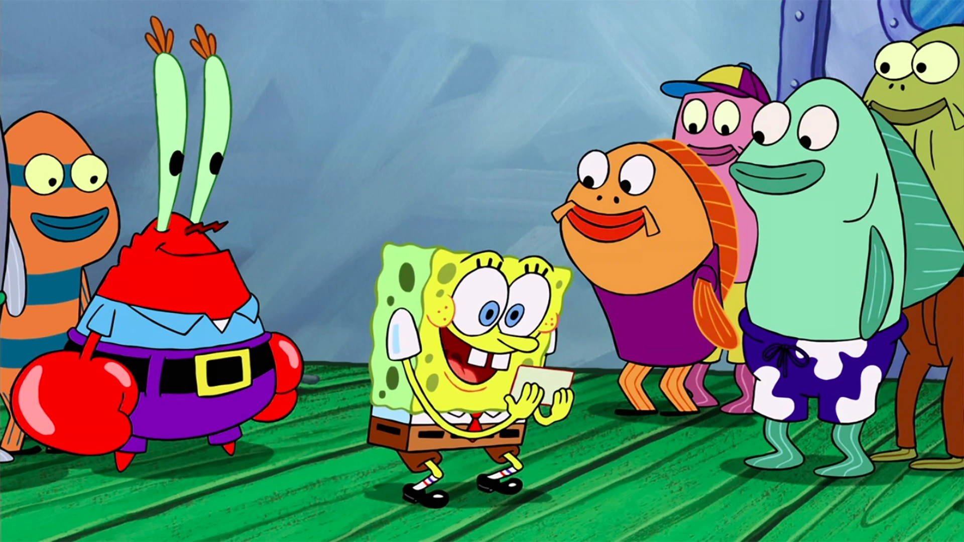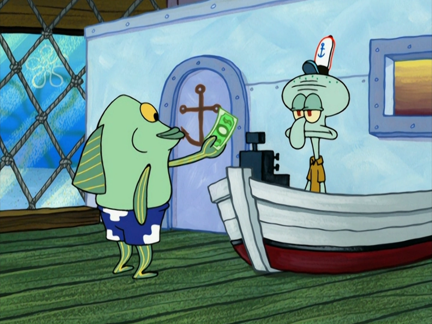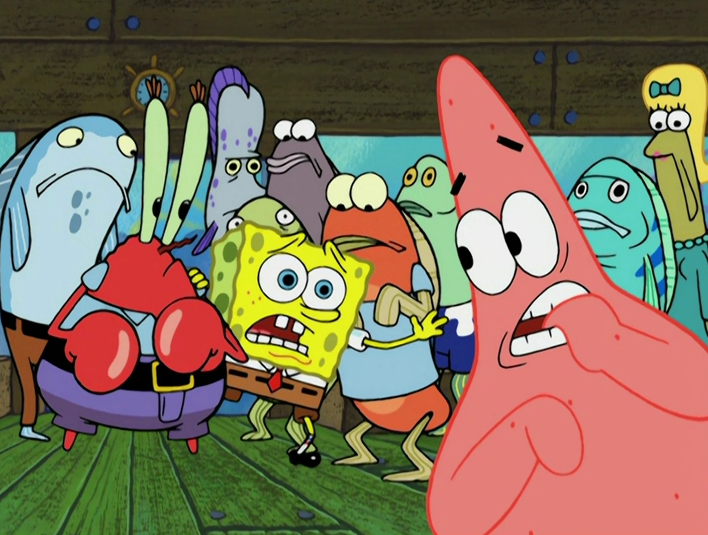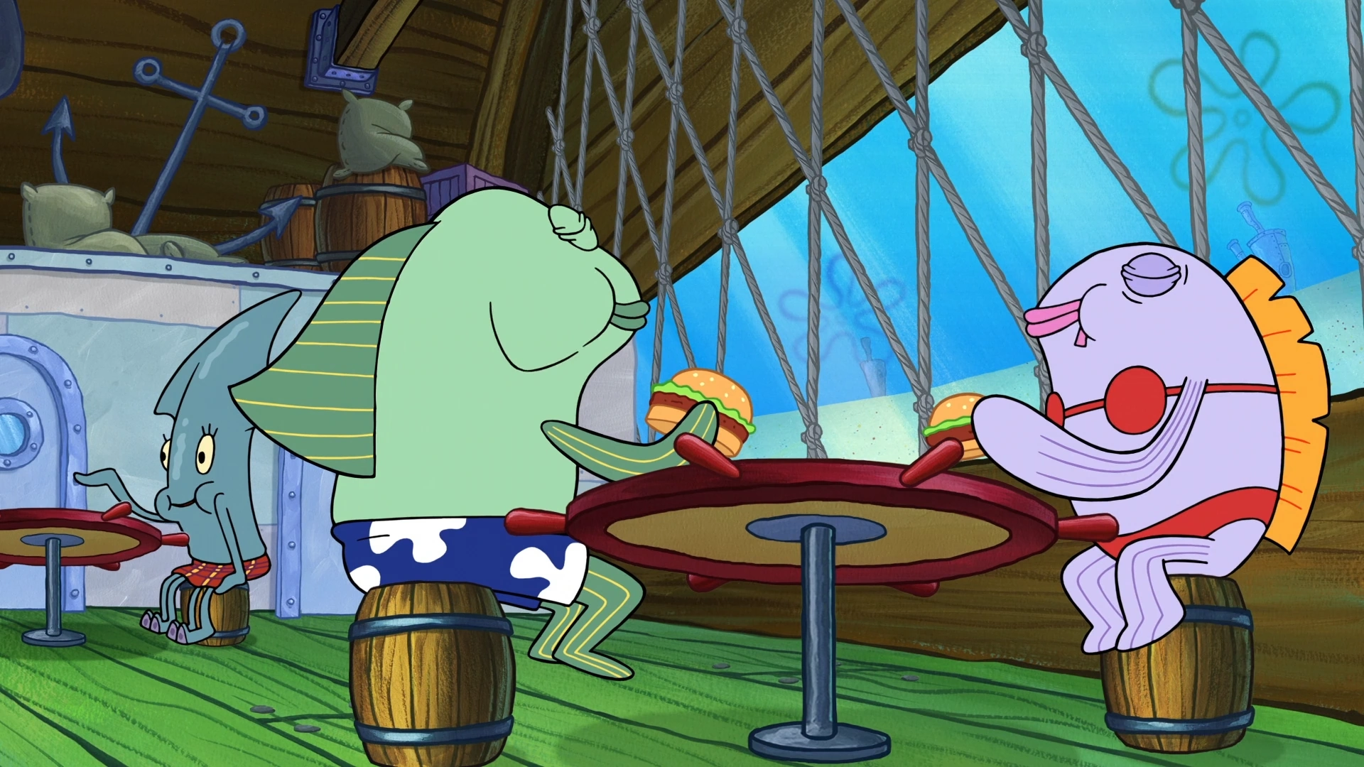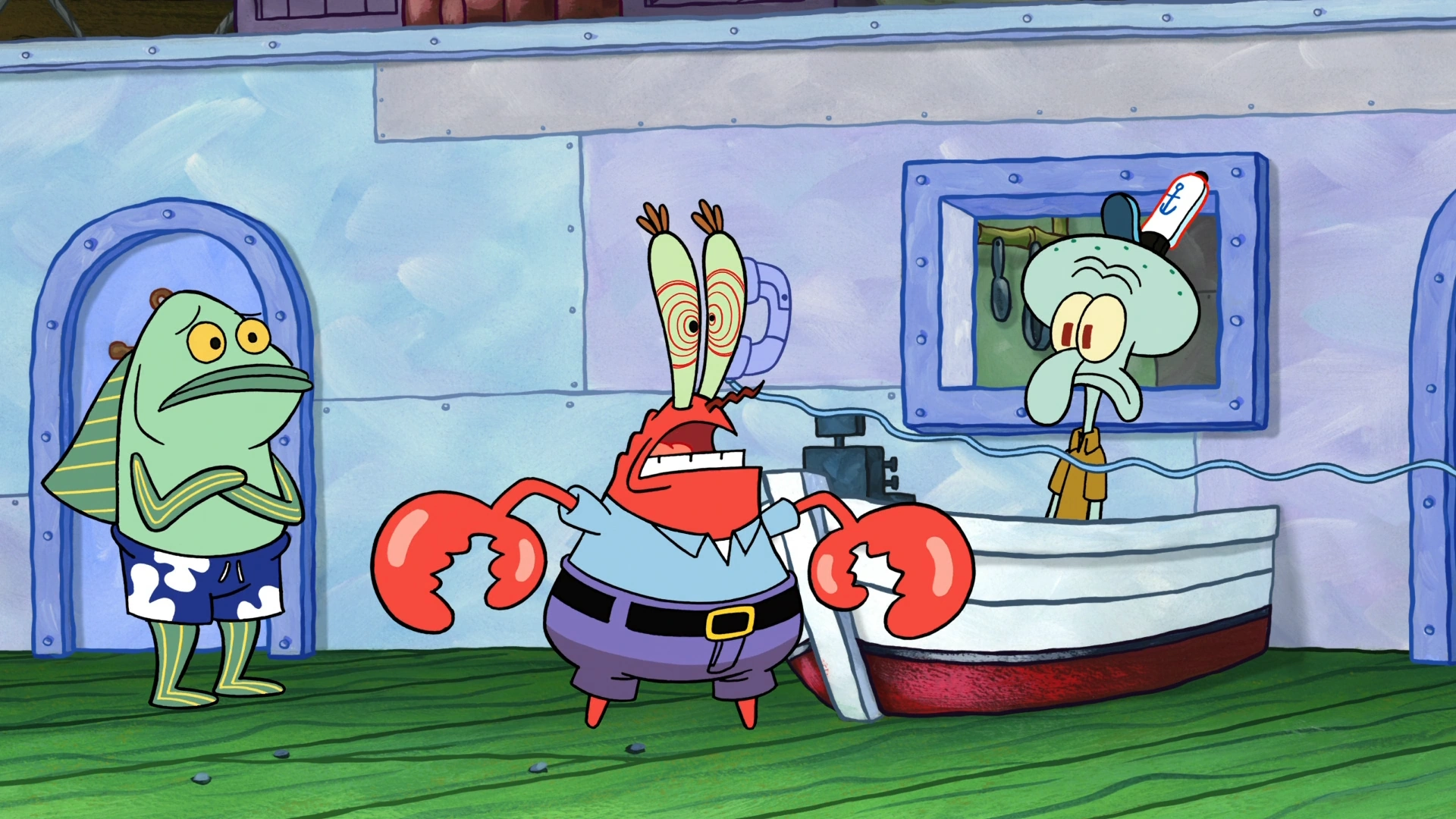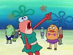He asks Mr. Krabs why would anyone buy food from a place that smells like stinky armpits after he reads a note on the bulletin board written by P-Star7 saying so.