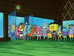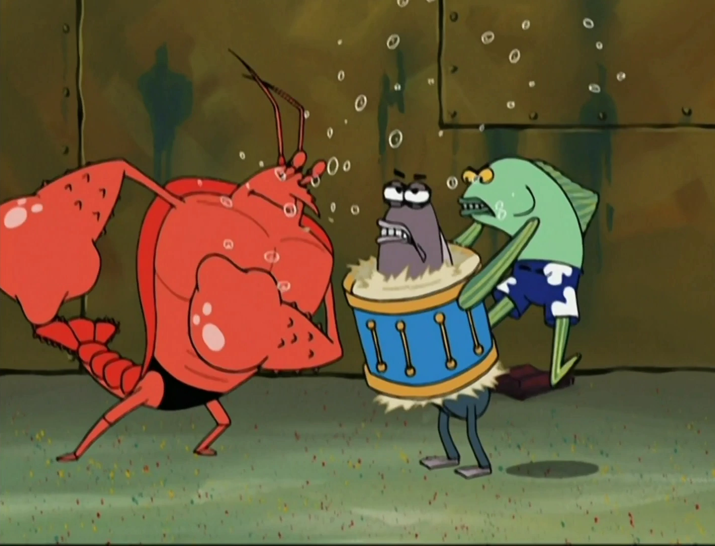 He appears as one of the band members playing music while Larry Luciano slithers to the torch, he falls over to his side after playing for two hours straight. He is also the referee for the snail race. Patrick mistakes him as a burglar due to his striped white and black uniform.