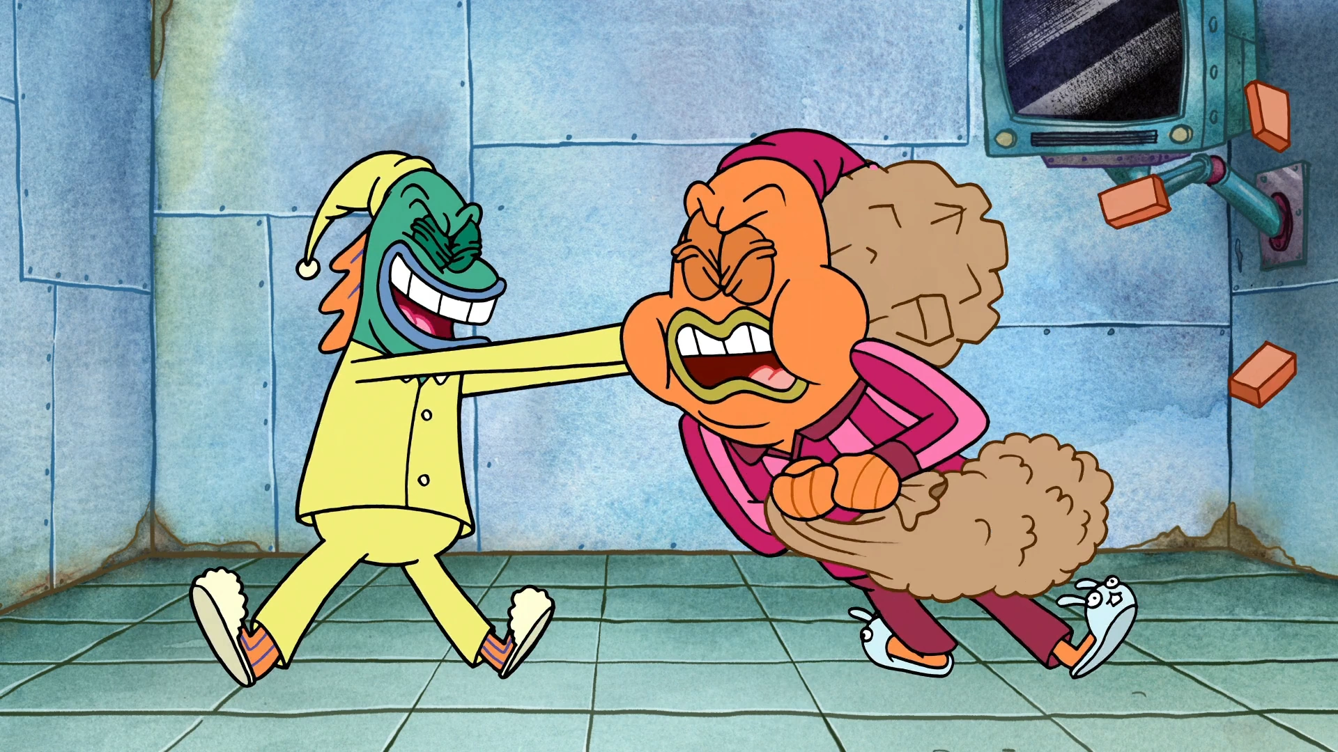 He is one of the caged prisoners at the Bikini Bottom Jail that is seen during the opening of the episode. He also appears as one of the prisoners that help Plankton get the Krabby Patty secret formula at the Krusty Krab.