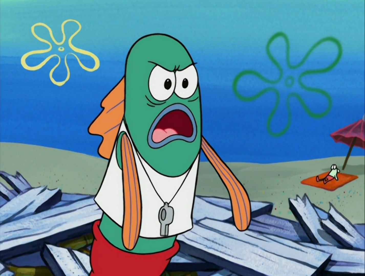 He is seen as a lifeguard when Patrick, trying to catch a Frisbee thrown by SpongeBob, runs into the lifeguard stand that he was on, causing it to crash to the ground, making him furious at the duo's idiocy. He later shows up and points out furiously points out the mess of debris and destruction left by the fight as the two see they went too far.