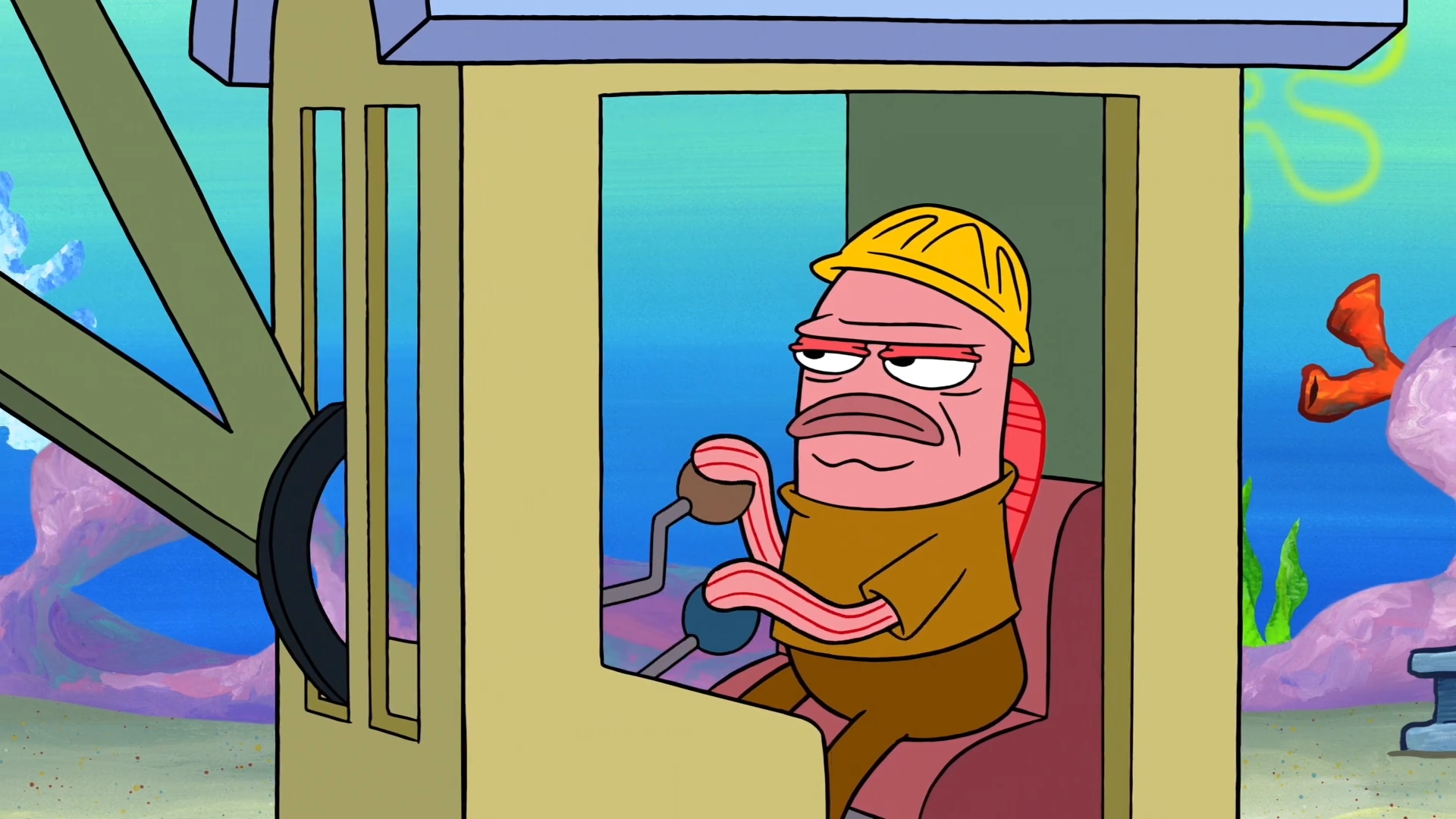 He and the other construction fish gang up on Squidward for using their crane as a toy.