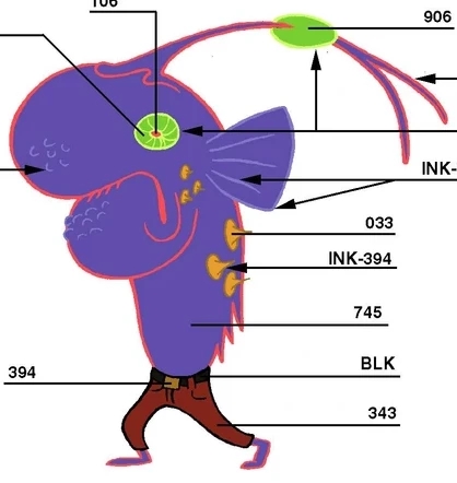 He also has an alternate design that first appeared in "Selling Out" where he wears pale blue overalls with a lighter pale blue pocket on the front, and a blue cap with a yellow square on it.