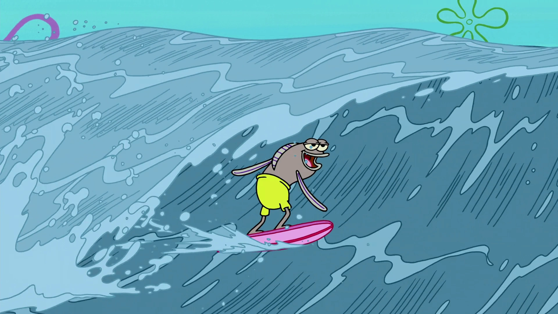 He is a surfer as seen in this episode, where he is scared off by SpongeBob and Patrick invisibly acting as ghosts and falls off his surfboard.
