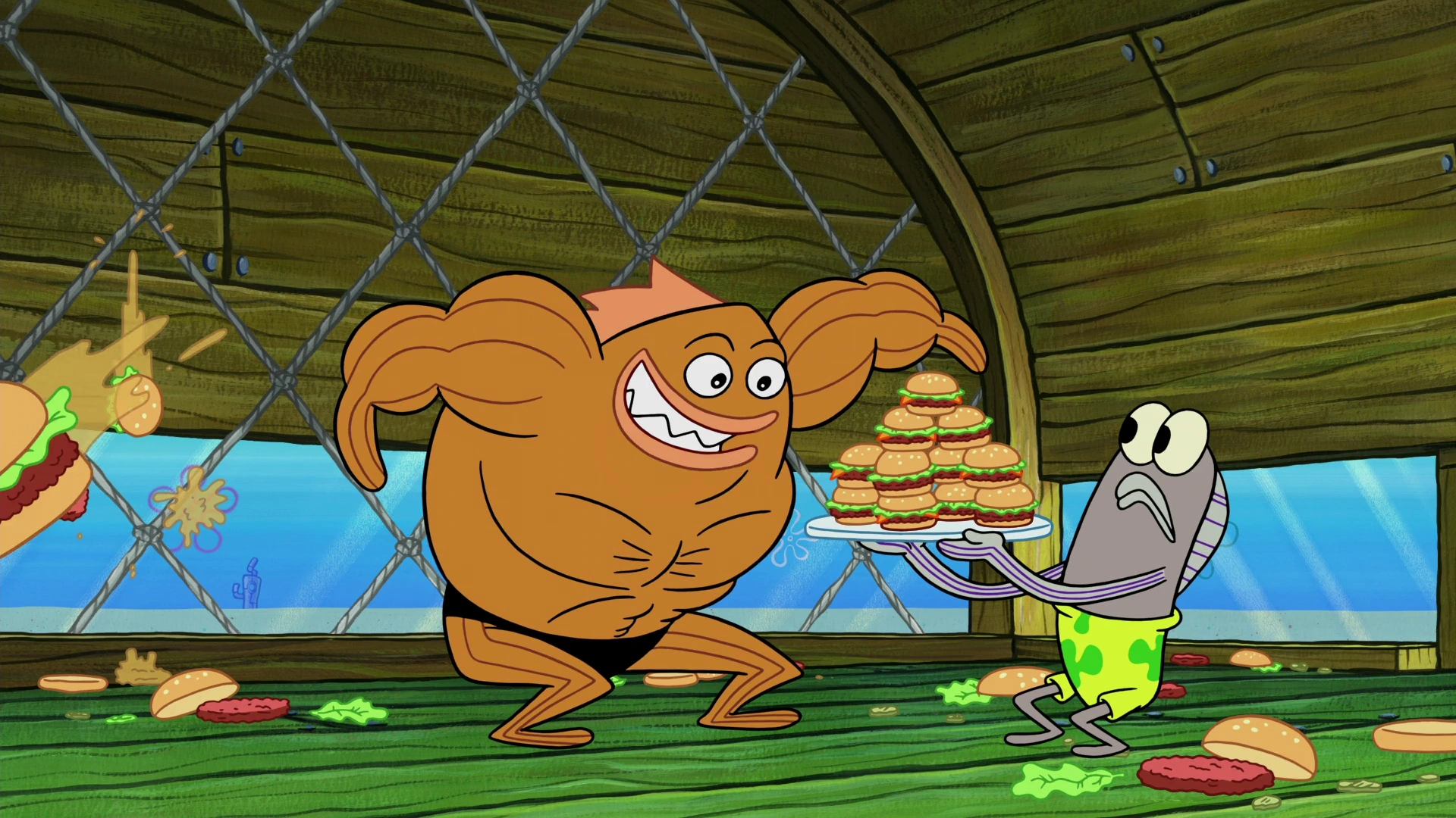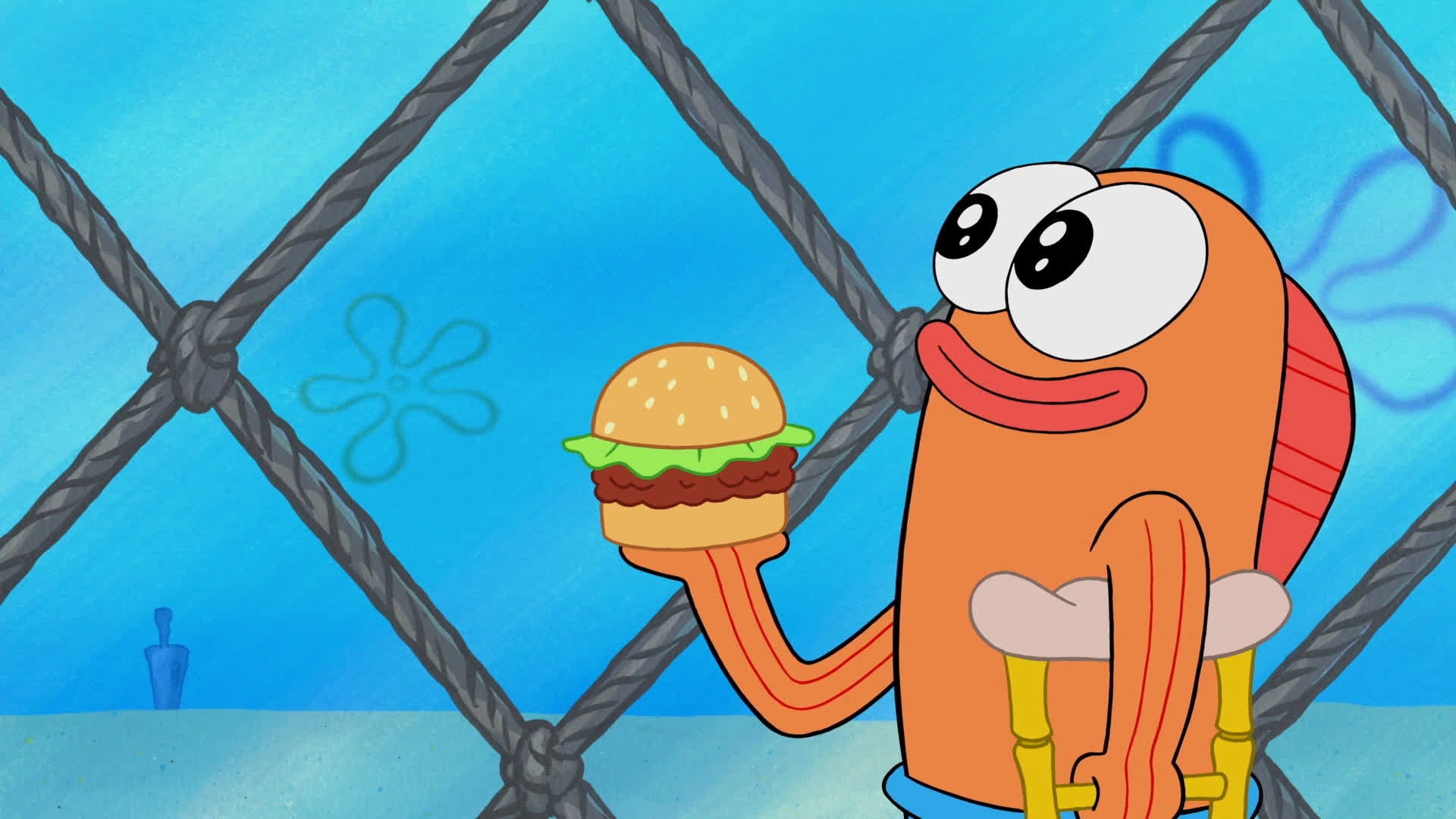 He is seen eating at the Krusty Krab during the opening of the episode.