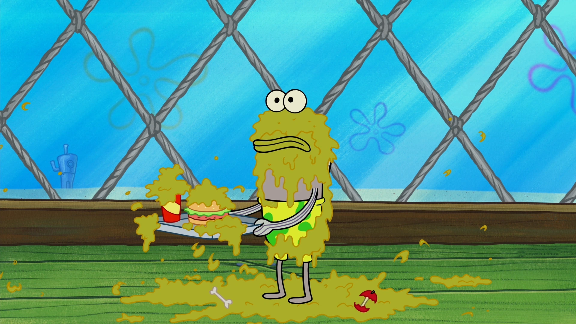 He asks SpongeBob for the ocean back after he absorbs Goo Lagoon.