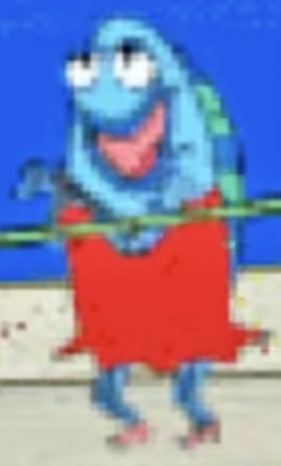 She is seen crawling in downtown Bikini Bottom where Incidental 107 gets up and burns himself for a short time so she can get by.