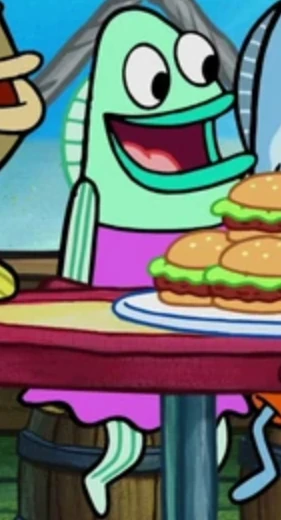 She is one of the customers at the Krusty Krab who gets amazed by SpongeBob's new singing voice.