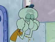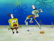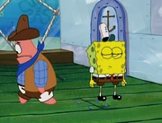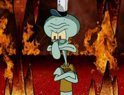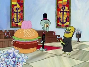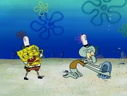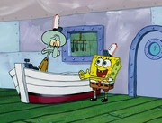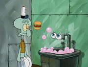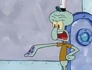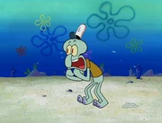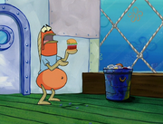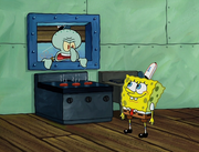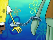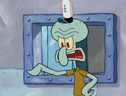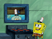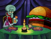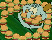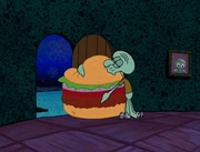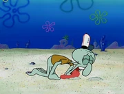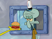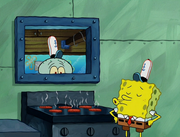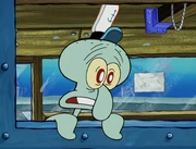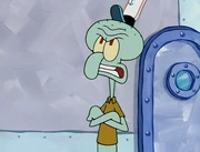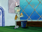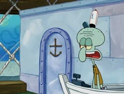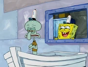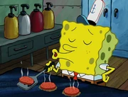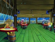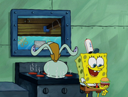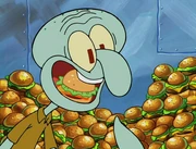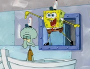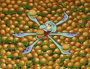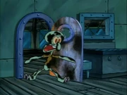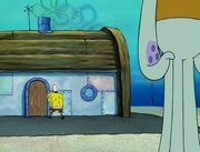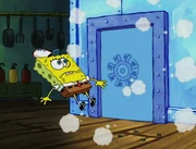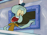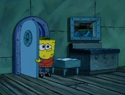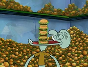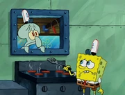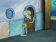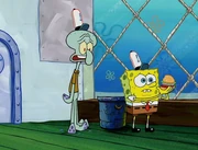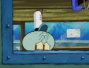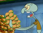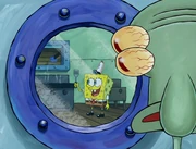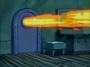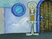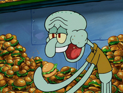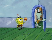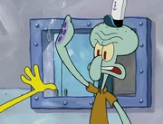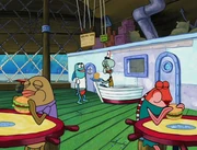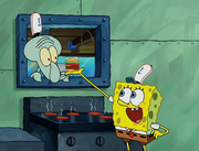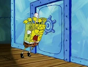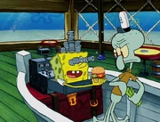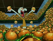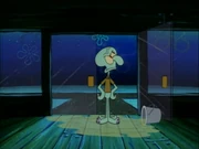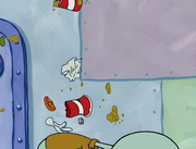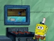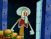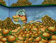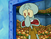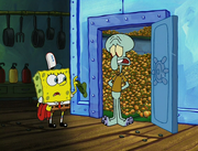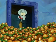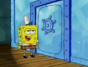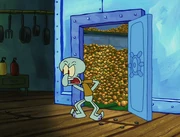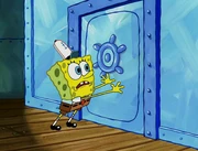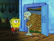 This gallery includes the deleted security gas alarm scene. This section begins from where Squidward looks through the front doors of the Krusty Krab at night up to where he sees the patty vault.