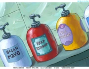- The sign in the bathroom written in English ("Please Wash Your Fins") and Spanish ("Lave Las Aletas") is a parody of similar signs found in public retail stores, notably the "wash your hands" sign.