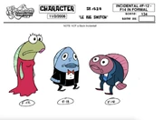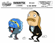 Both original characters in this episode have reappeared later. A teal version of Mr. Crustacean is a bakery owner in "Don't Feed the Clowns," and a green version of Le Schnook appears under the name "Luigi" in "X Marks the Pot."