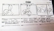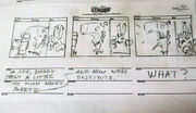 In the original storyboards (pictured to the right), there was a full scene showing Pearl in her room as she talked on the phone with Mr. Krabs, and their conversation was longer. This scene was cut from the final episode.