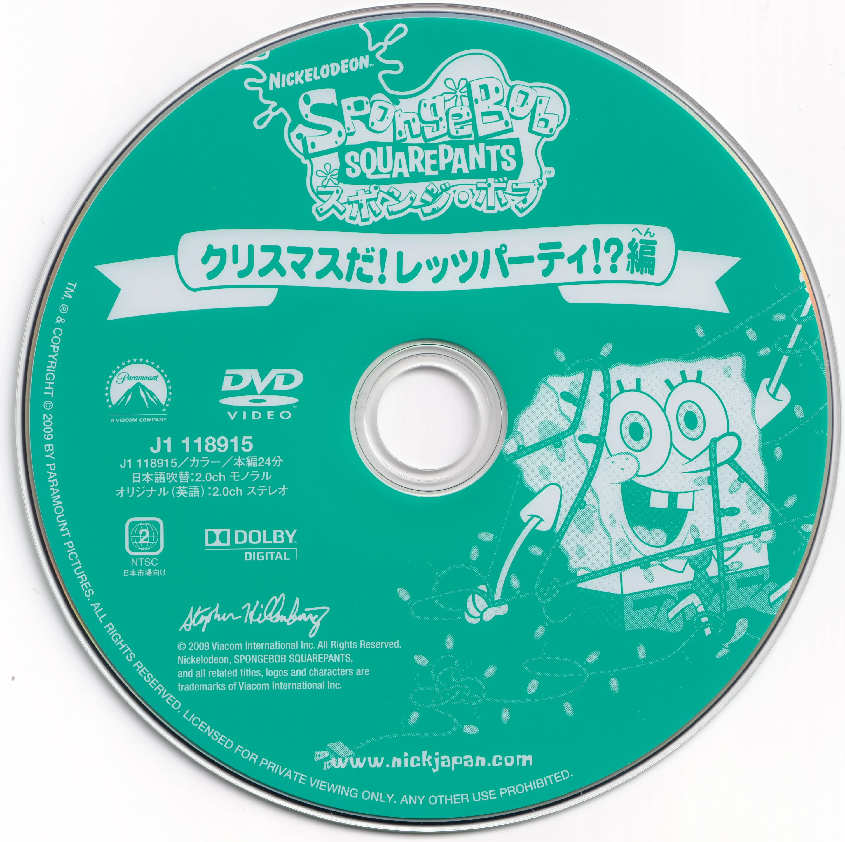 Let's Party at Christmas! (Japanese: クリスマスだ!レッツ パーティ!?編 ) is a SpongeBob SquarePants DVD released exclusively in Japan on November 27 , 2009 . It contains one episode from season 2 .