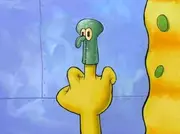 This is a quote from "I ♥ Dancing," when SpongeBob responds to Squidward after he makes fun of his dance move. This is an expression used in online conversations as an insult towards another poster for their perceived stupidity or ignorance. The quote was originally said by Christian televangelist Reverend X in an episode of his public access TV program The Spirit of Truth which aired sometime in the early 2000s, but its colloquial usage came through its inclusion in "I ♥ Dancing." Like his eager face, SpongeBob’s dance would be referenced in Nicktoons & The Dice of Destiny during the opening cinematic, along with other characters dancing along.