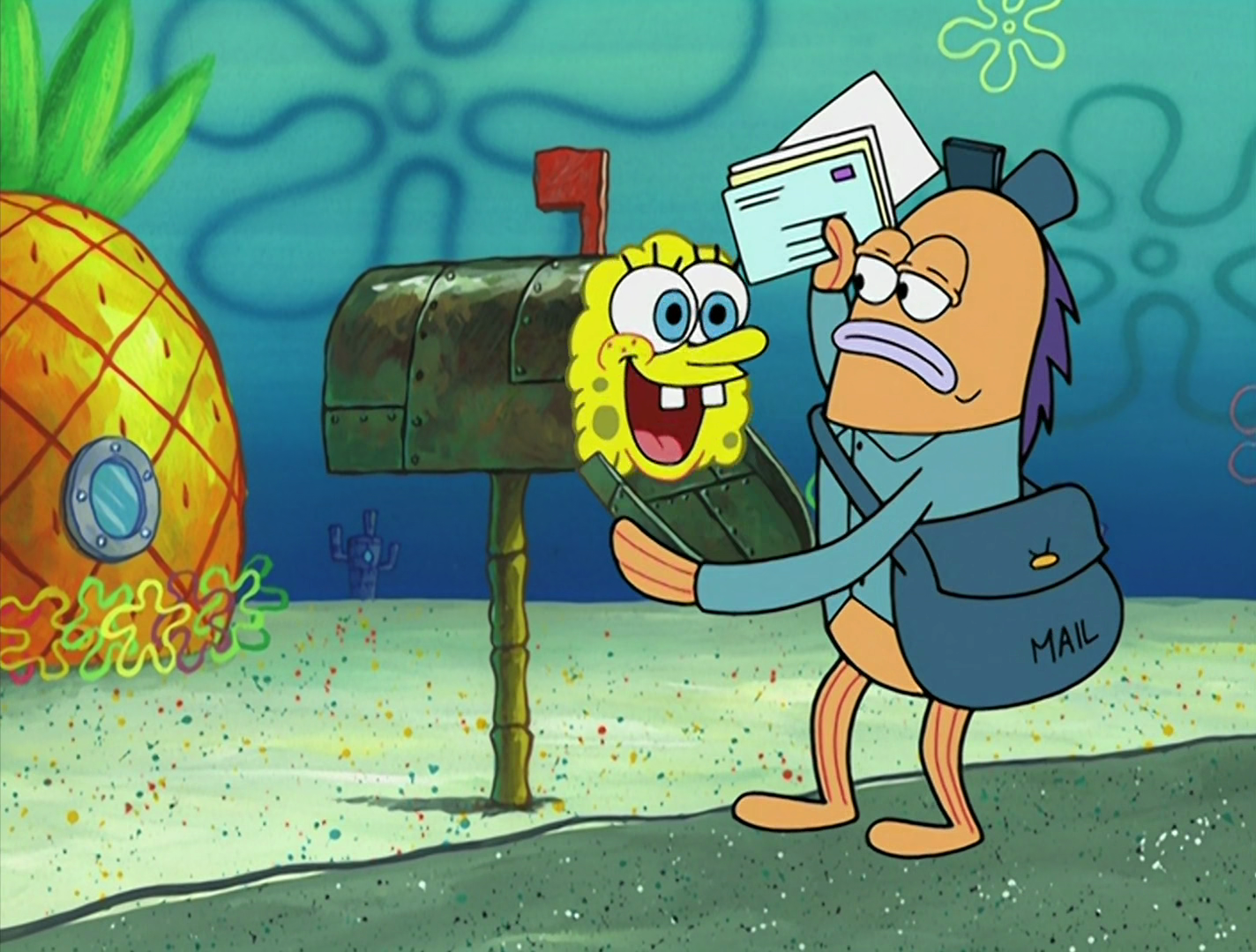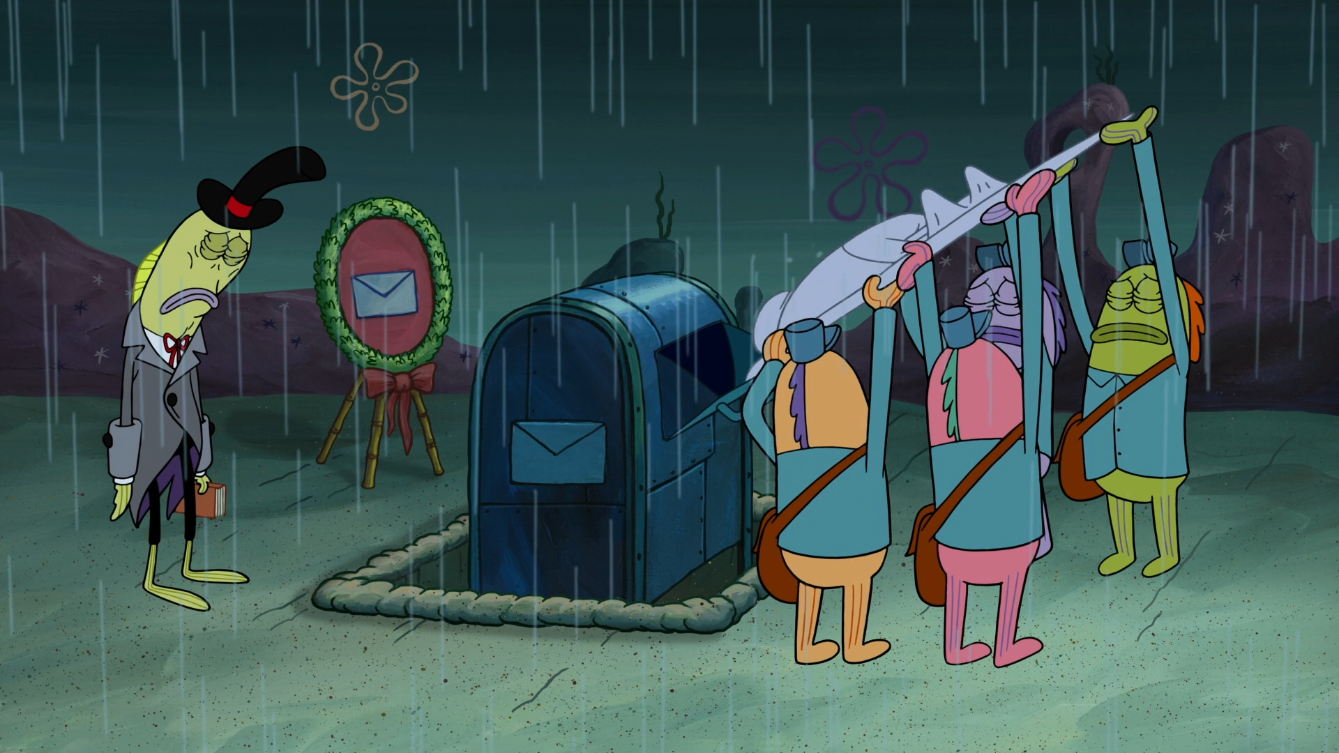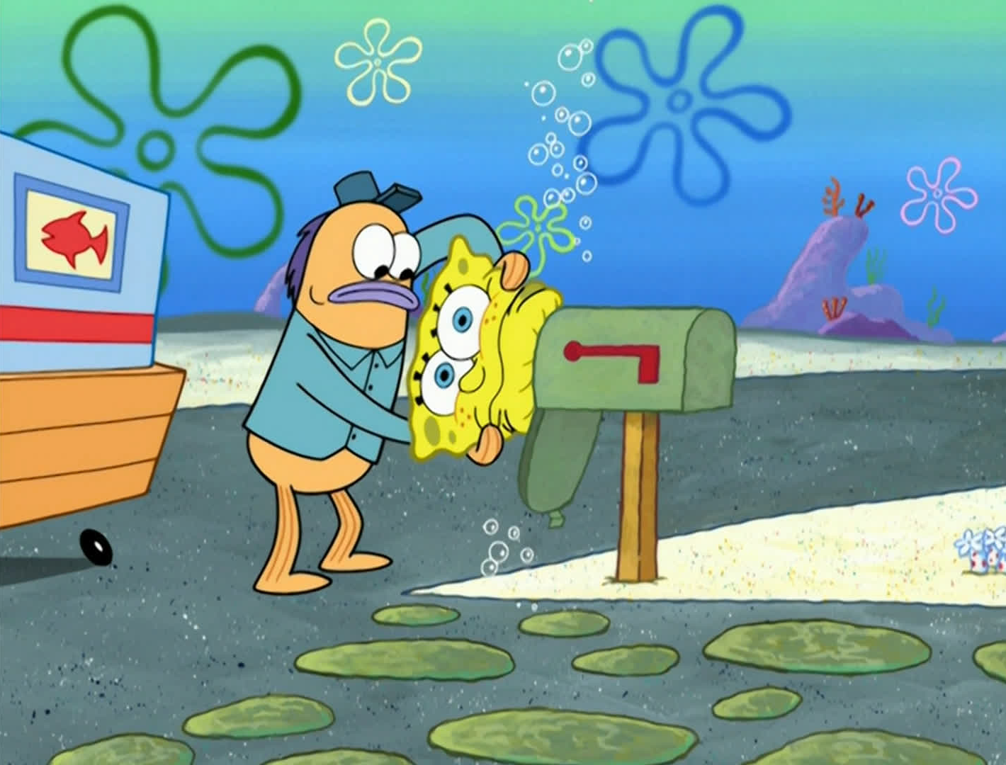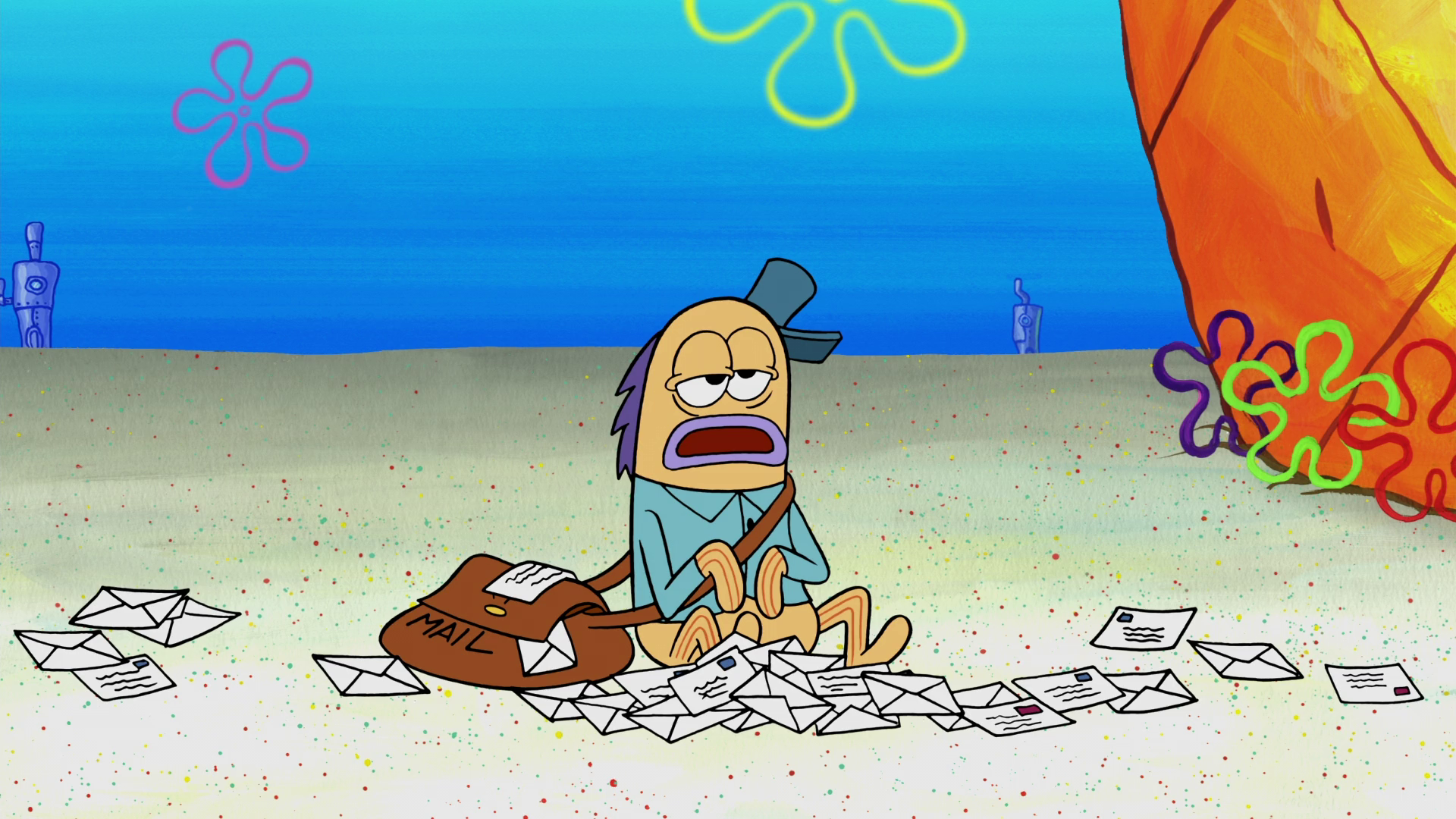 He delivers SpongeBob and Patrick's mail and gets turned into a faux-chovy.