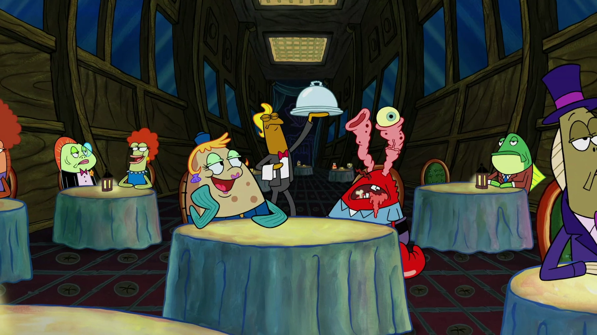 • Lounging and Fine Dining - Nicolas Carr, Barry Anthony [Krabs sees Mrs. Puff with Chum Krabs at Fancy! restaurant]