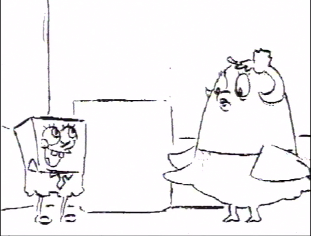 - After Patrick leaves at the end of the episode, there is a deleted line of SpongeBob saying, "Can I have his star?" The ending would instead feature Roger hatching from his egg and asking "Hey, what'd I miss?"