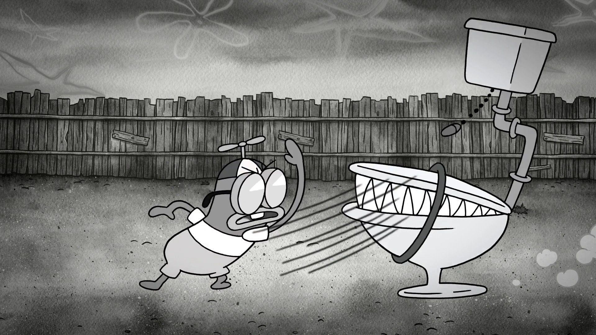 Shiny Bubble knocking Old Man Walker down.