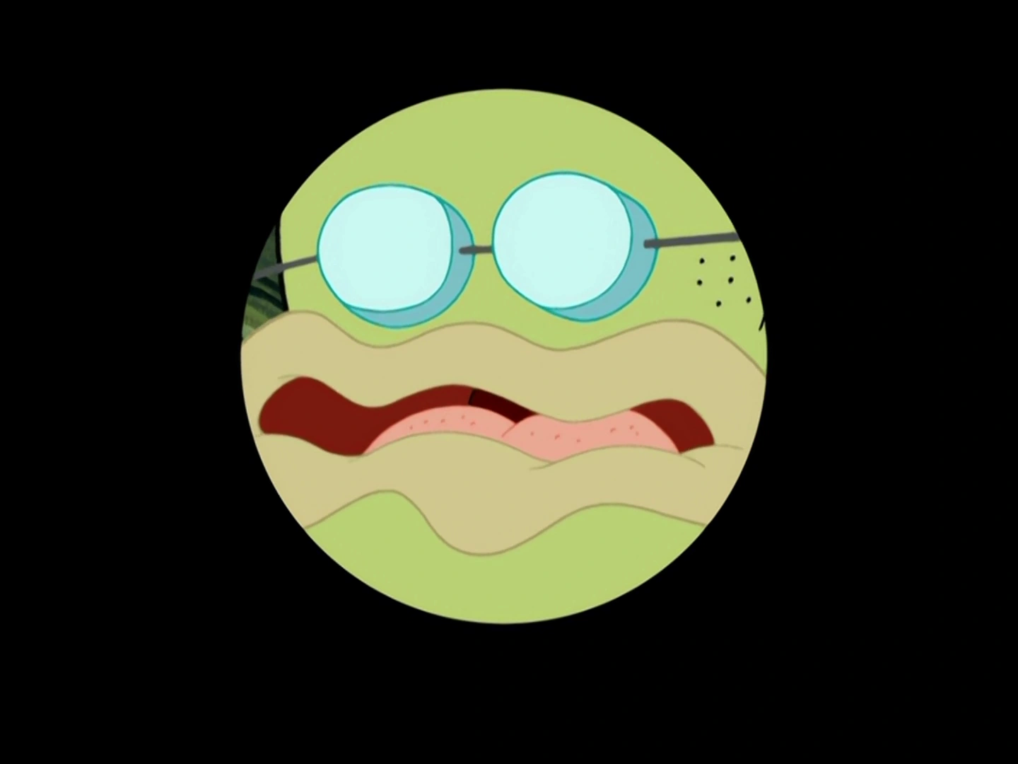The screen zooms right into his mouth during the introduction of the episode.