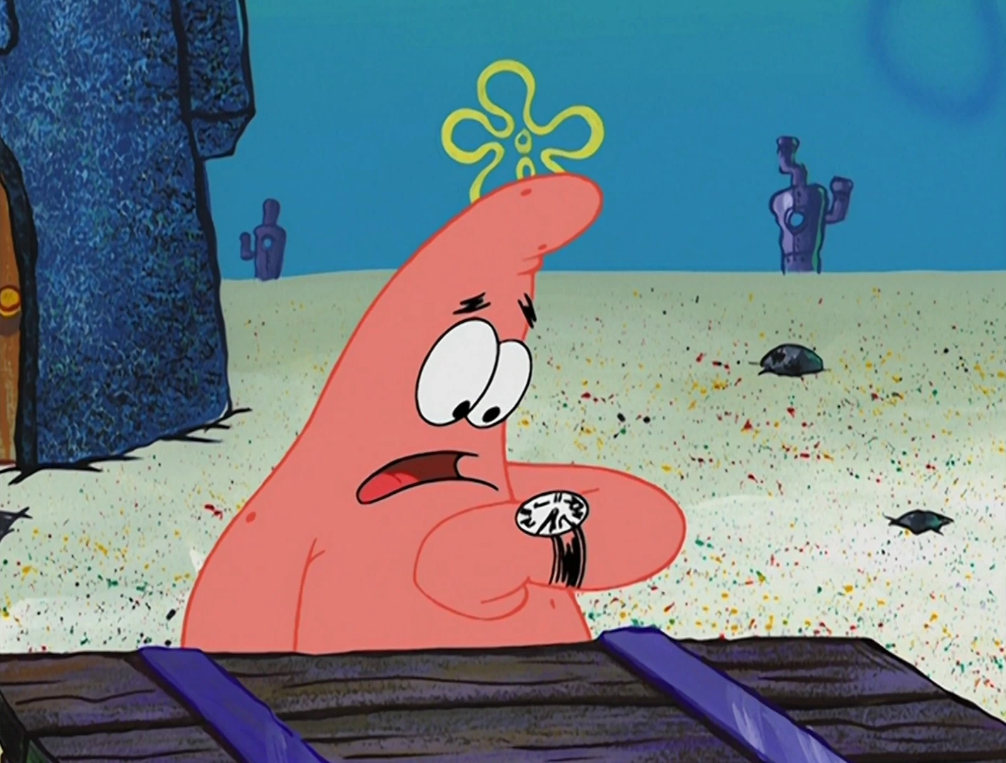 - After giving sacks of free money to the Bikini Bottomites, Patrick does not appear again for the remainder of the episode.